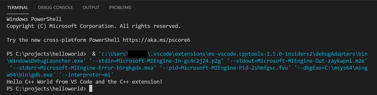 Configuring the C++ extension in Visual Studio Code to target g++ and gdb on a Mingw-w64 installation