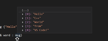 vector<string> msg {"Hello", "C++", "World", "from", "VS Code", "and the C++ extension!"};
