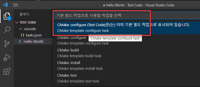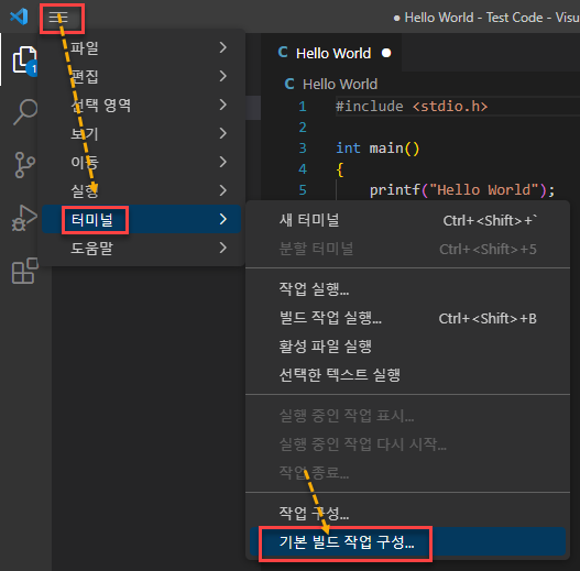 먼저 "터미널" ▶"기본 빌드 작업 구성..."으로 들어간다.