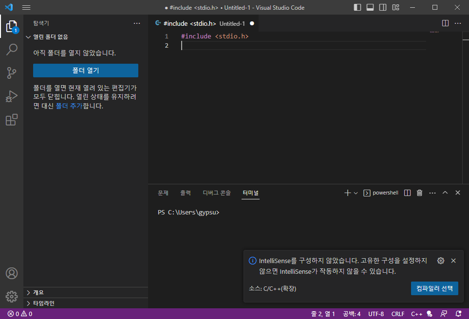 Visual Studio Code에서 C/C++ 코딩 환경 구축하기